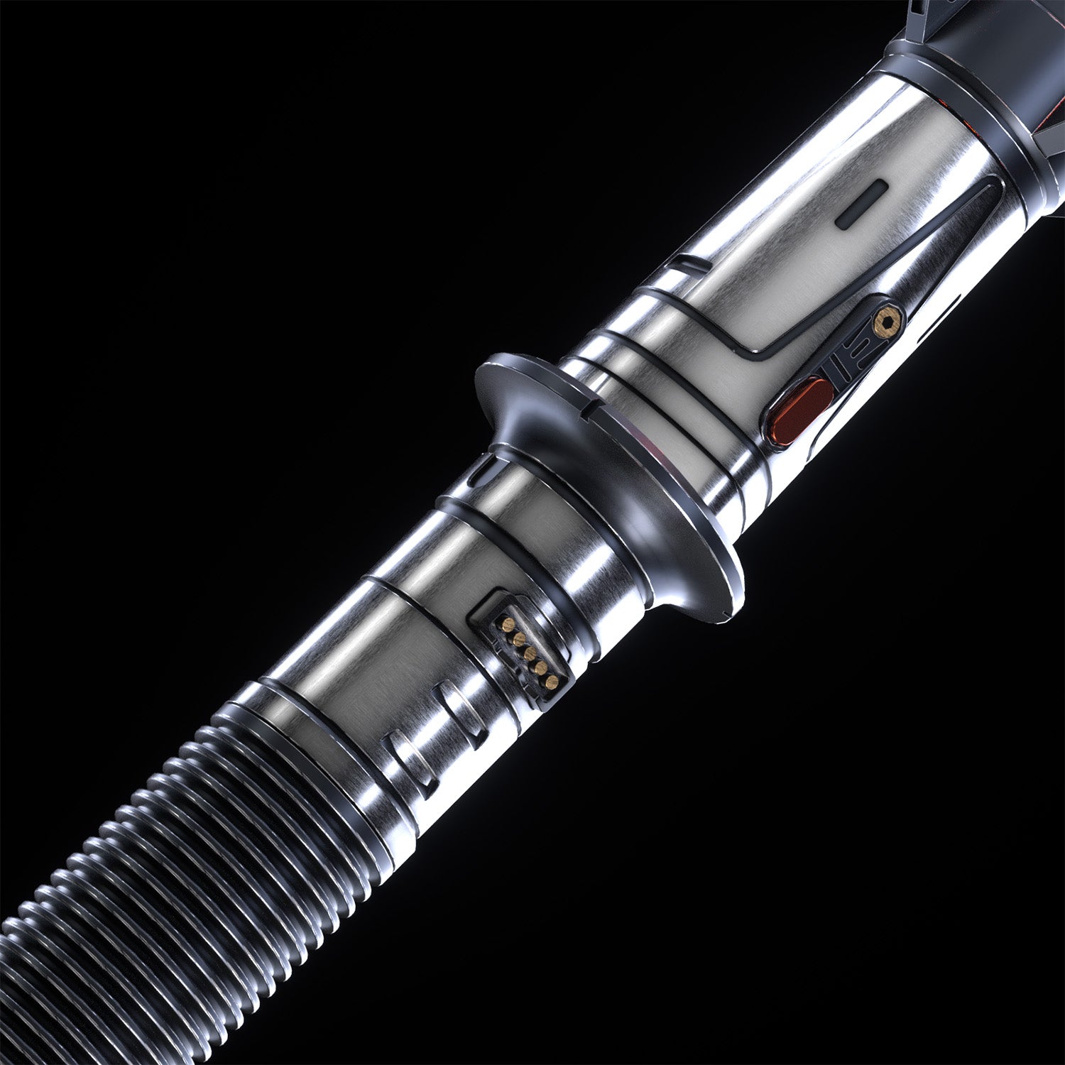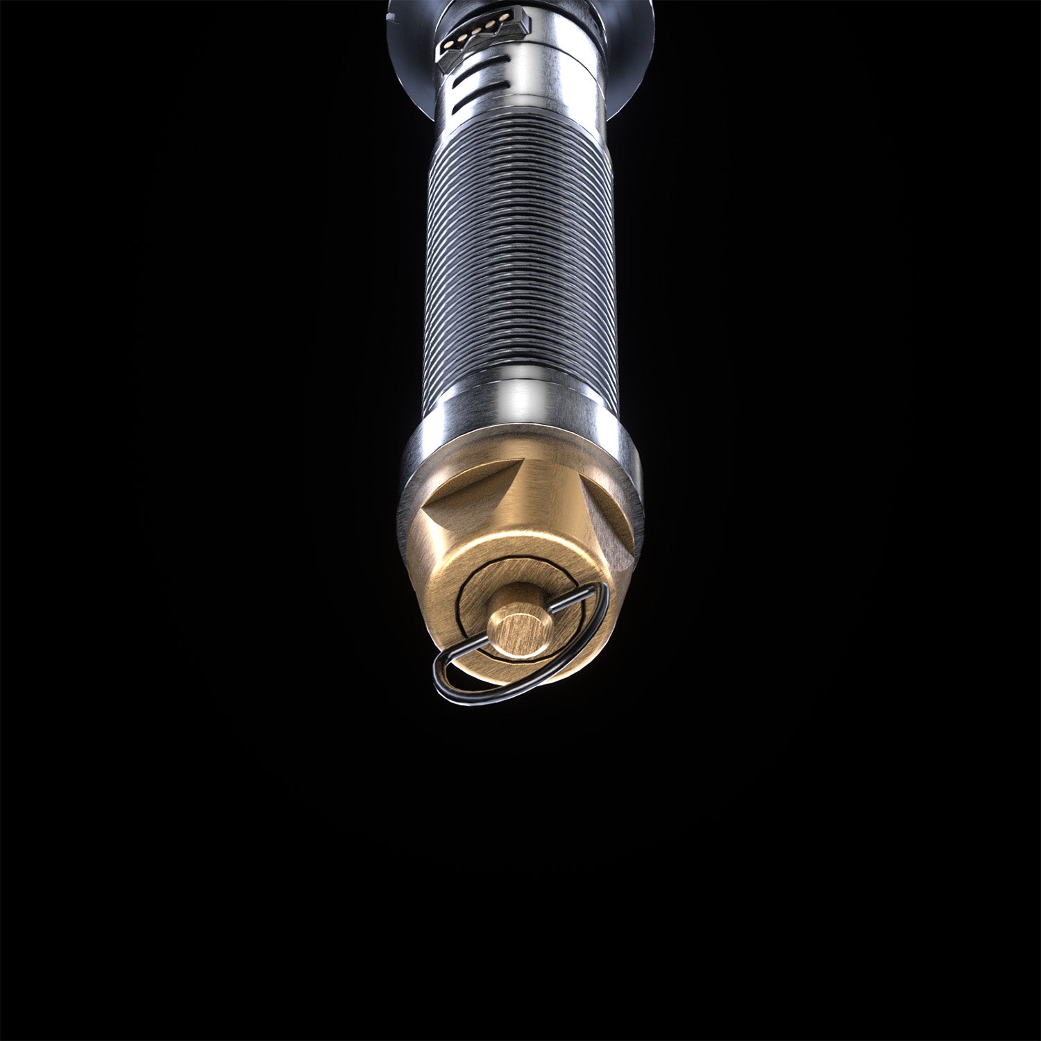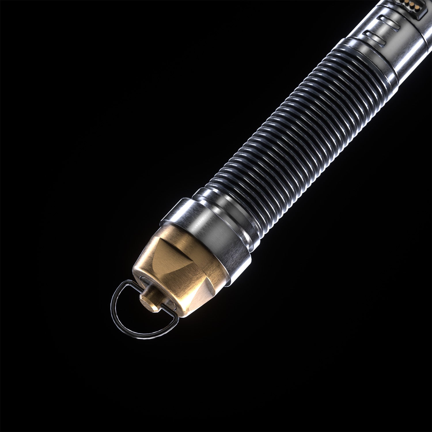 From its rugged emitter shroud to its weighty grip and bronze-accented pommel, every element exudes authority. Designed for those who fight with purpose and restraint, this saber feels powerful in the hand and even more so in motion.