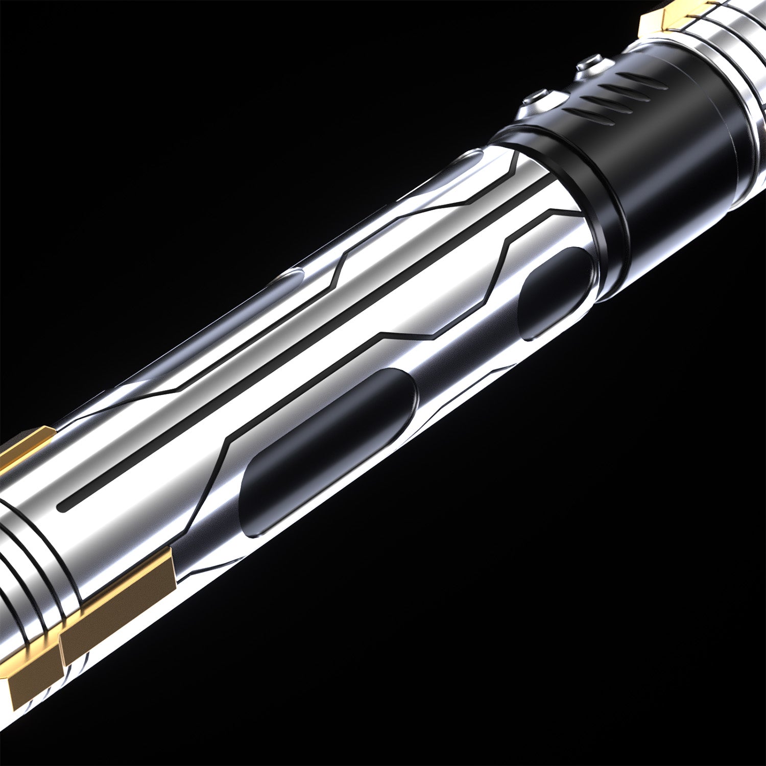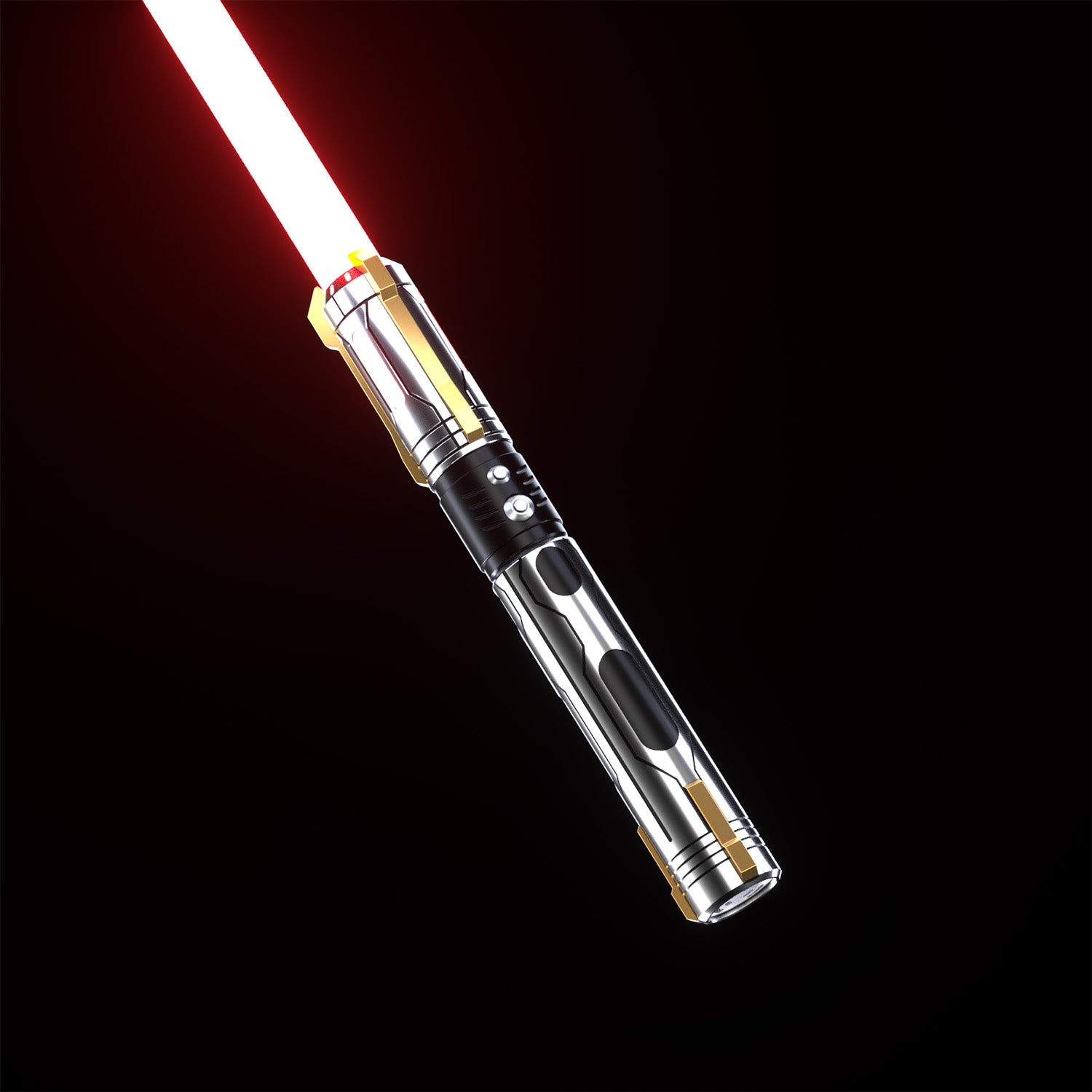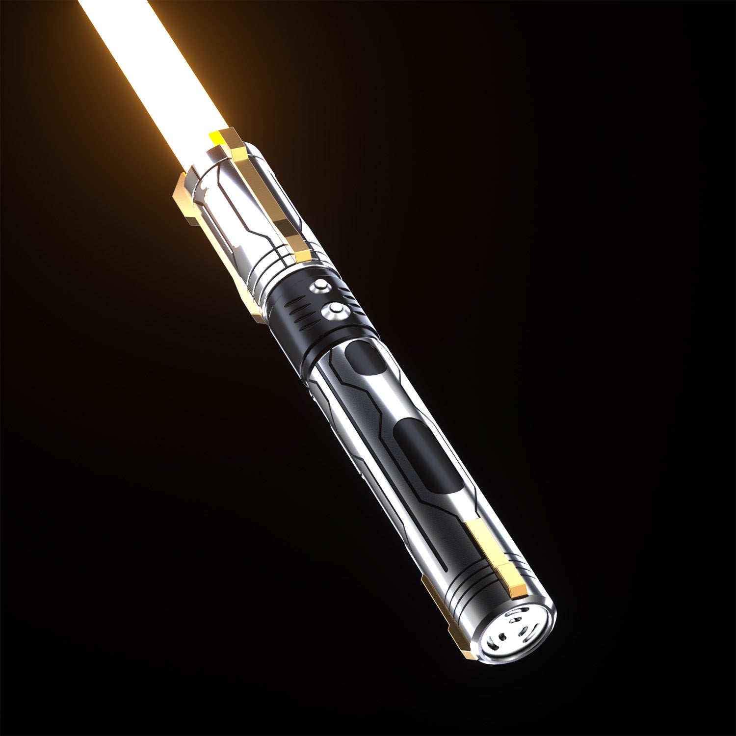 The Ghost saber features a polished metallic hilt with intricate black accents and striking gold details near the emitter. Its clean, minimalist design is as captivating as it is functional, ensuring a comfortable grip and seamless handling. The precision-crafted hilt feels perfectly balanced, making it an exceptional tool for both combat and cosplay.