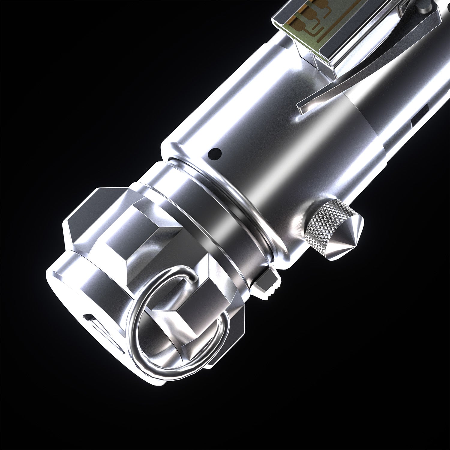 The Prodigal Son ROTJ V2 showcases a polished metallic hilt with a control box for a striking contrast. Its control box and intricate detailing evoke a sense of balance and purpose, making it a visual standout. Every element is designed to mirror the grace and power of a legendary wielder, delivering both style and substance.