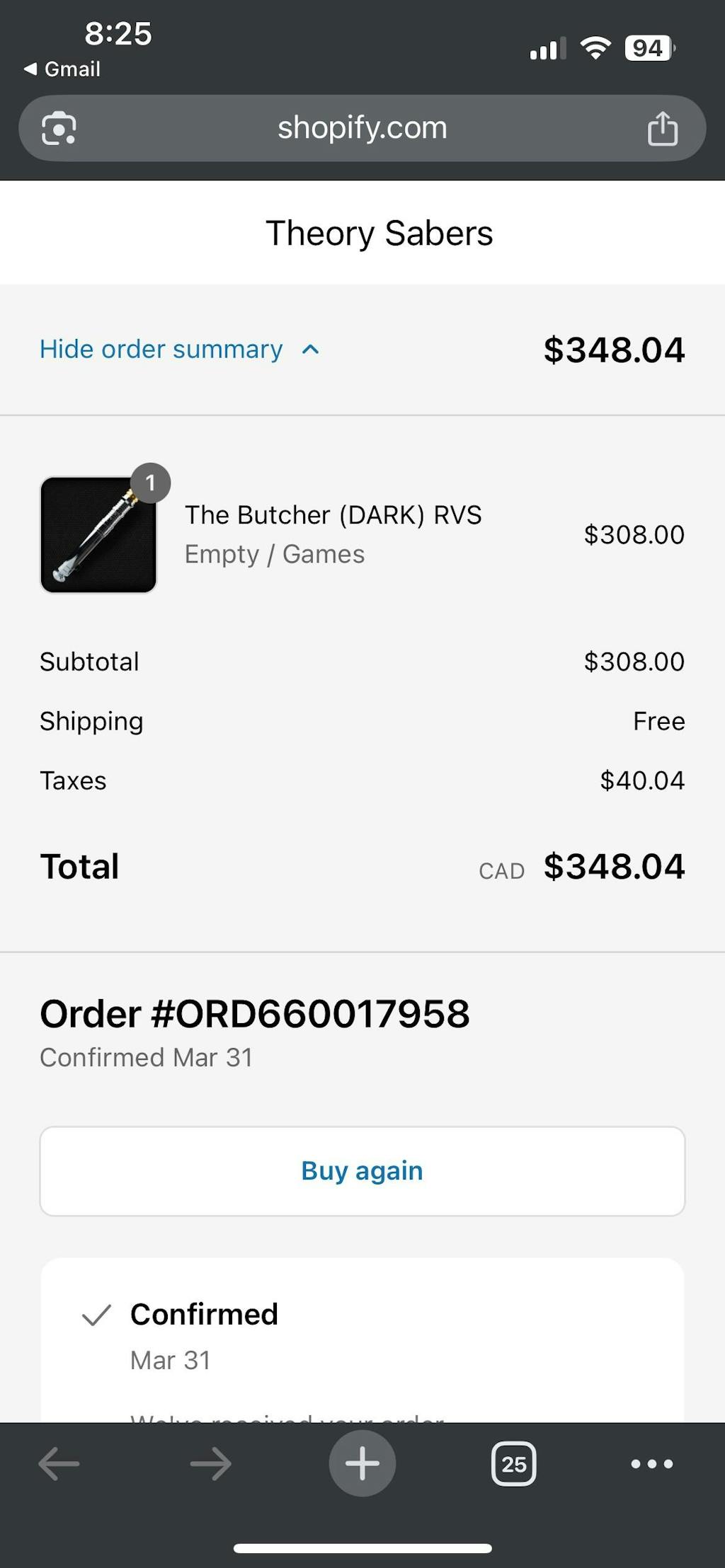 Every Dark Butcher saber order includes: